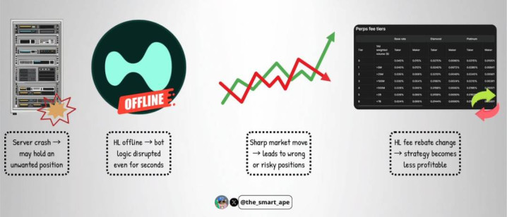 交易所故障:虽然罕见,但Hyperliquid平台若出现宕机或故障,可能在几秒内打乱机器人的交易逻辑;